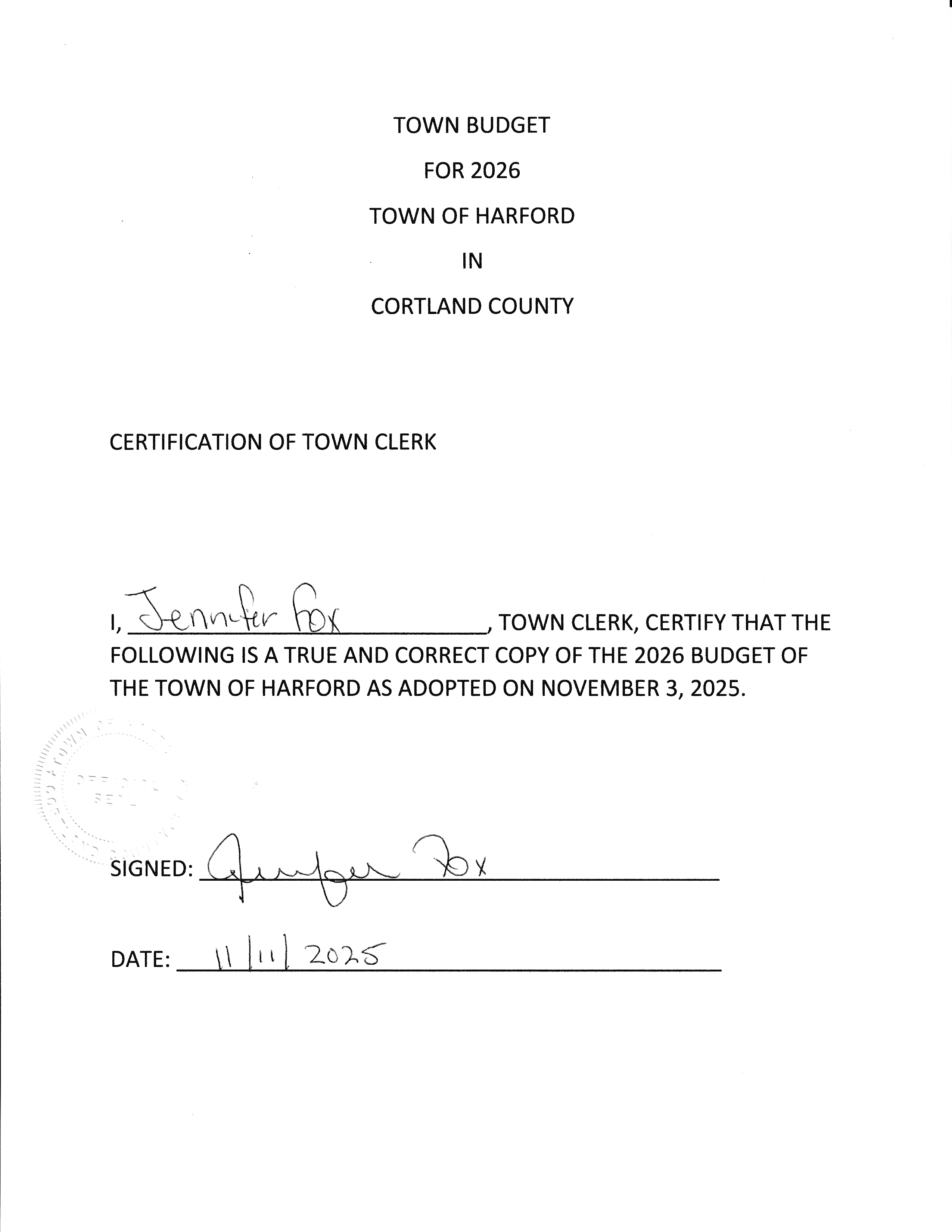 Town of Harford Po Box 120 Harford, NY 13784 US